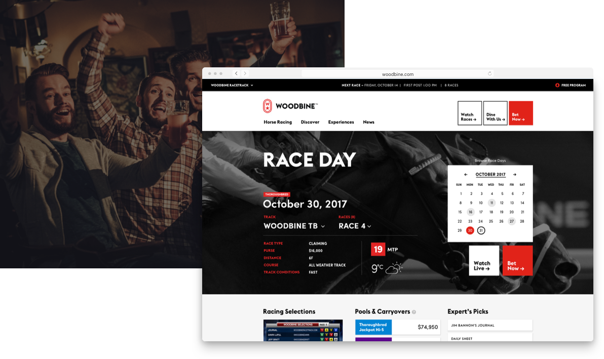 Woodbine Entertainment Group was seeking a new website that leveraged their new branding to provide an engaging online experience, while serving as effective resource for bettors and horse owners.